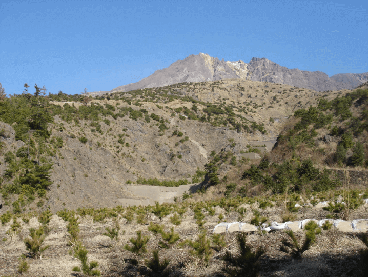 湯の平展望台より見る大正噴火(西側山腹)の噴火跡