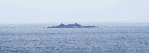 一方,潜水艦のような形の島(下の写真)は,溶岩から成る岩礁です.