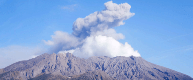 南岳では1955年以降,爆発と降灰を繰り返す活動が続いています.1980年代は特に活発でしたが,2000年前後頃は静穏となり,2008年以降また活発に噴火を繰り返しています.最近は,1946年に昭和溶岩を流出した“昭和火口”からの噴火が主で,南岳火口からの噴火は多くはありません.活動が活発な時期に桜島を訪れると,時々,大音響とともに噴煙が数1000メートルの高さまで立ち上る爆発的な噴火をみることができますが,音もなく灰を放出しつづける活動も日常的に見られます.この結果として,山全体が灰にまみれて,鹿児島市で行われている“克灰袋”や“克灰住宅”といった独特な取り組みにもうなずかされます.