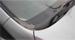 噴煙の下での調査中に車のフロントガラスに結構な量の火山灰がたまりました.